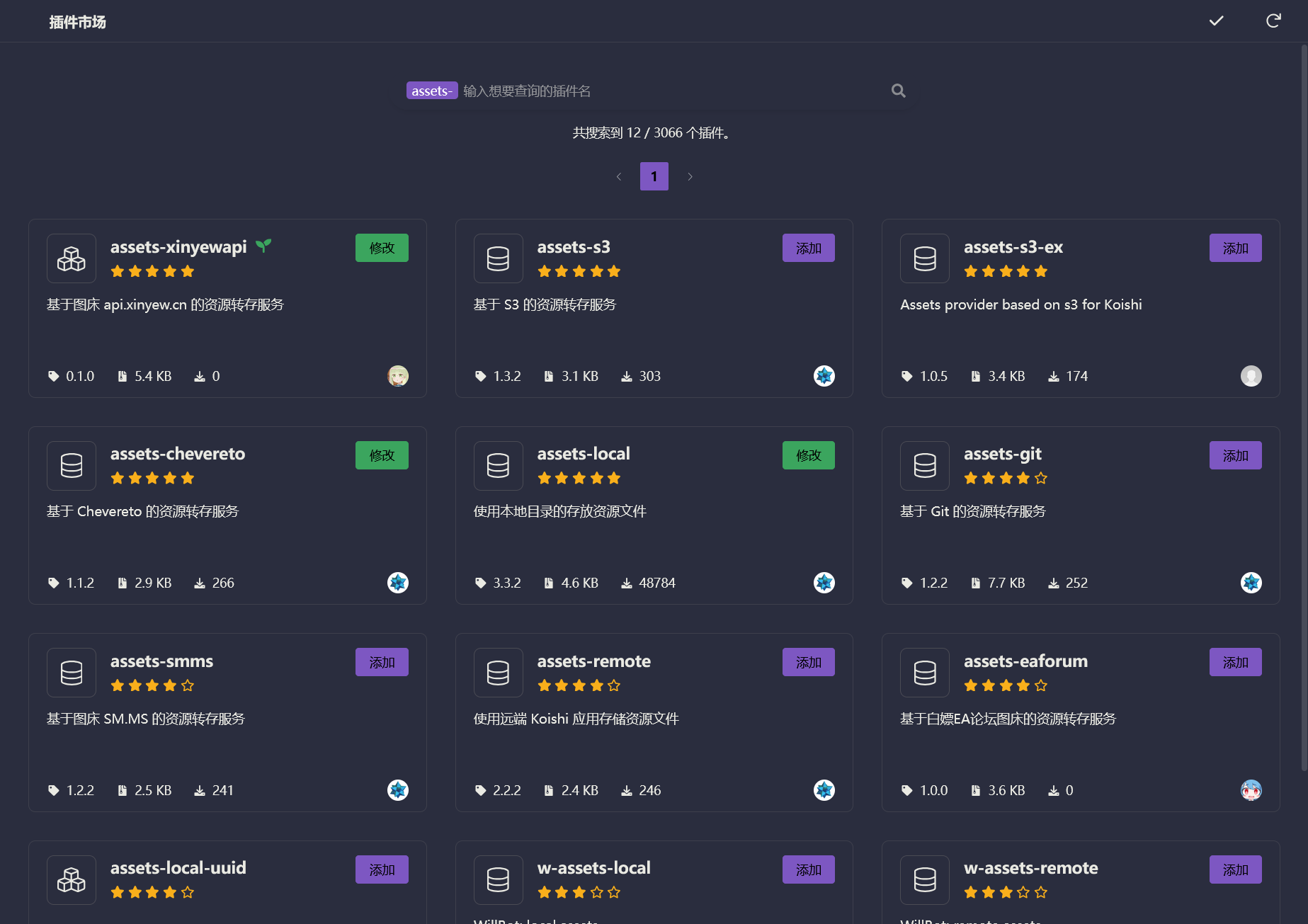 不同的assets实现插件 提供的服务相同(提供图床实现、文件床实现),
